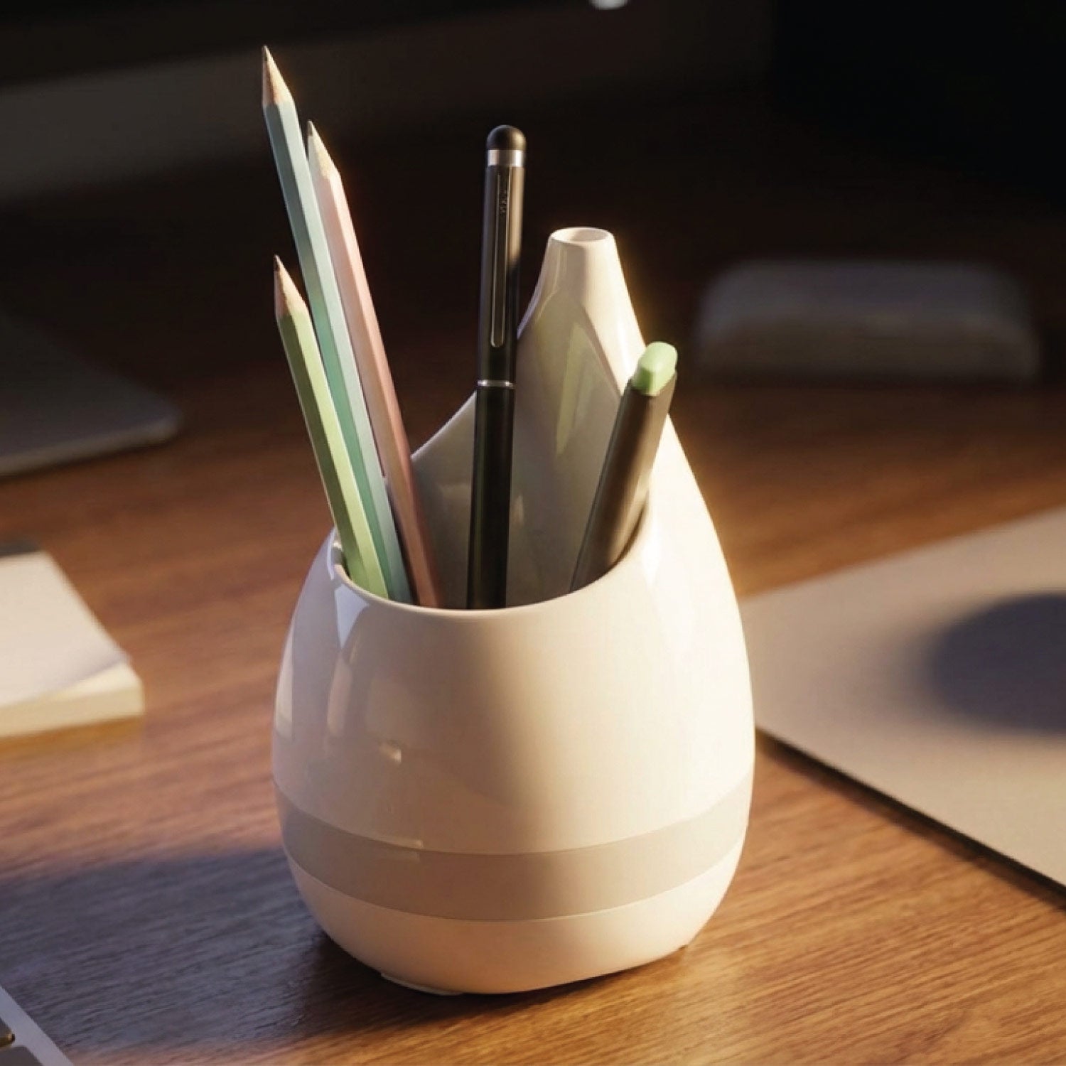 Say goodbye to traditional pen holders and hello to eo pencil stand. A unqiue office desk stationery holder that comes in a beautiful tear drop design. Go beyond the ordinary & upgrade to the inspiring & curvy.
